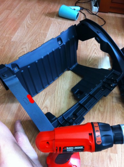 그래서 많은 회원님들이 빨간색 칠한 부분을 뚫어서 스위치를 넣습니다. 최대한 안 쪽으로 뚫어야지
