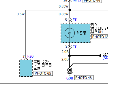 회로도 보시면 후진등 3번에 접지 5번에 후진신호선에 연결하시면 됩니다.