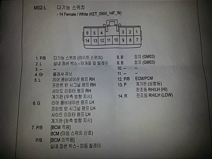 두번째 사진 엑센트다기능 스위치에서 첫번째 사진 올뉴모닝 오토라이트 다기능스위치로 배선바꾸시면됩니다