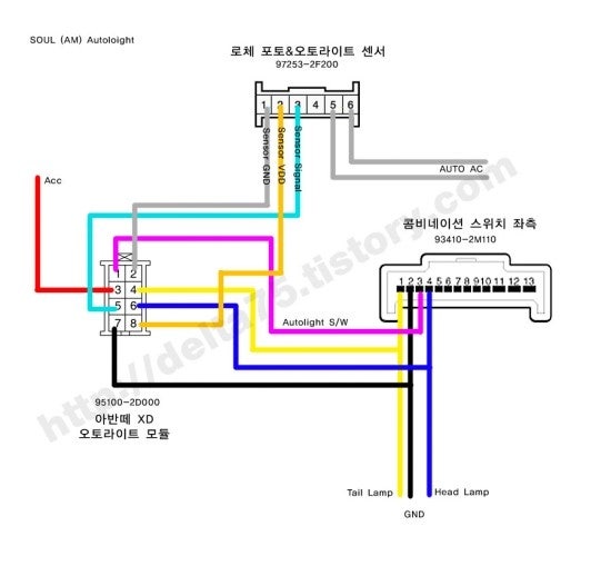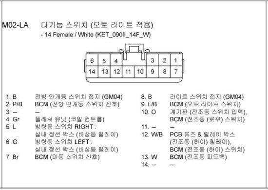 두번째 사진 엑센트다기능 스위치에서 첫번째 사진 올뉴모닝 오토라이트 다기능스위치로 배선바꾸시면됩니다