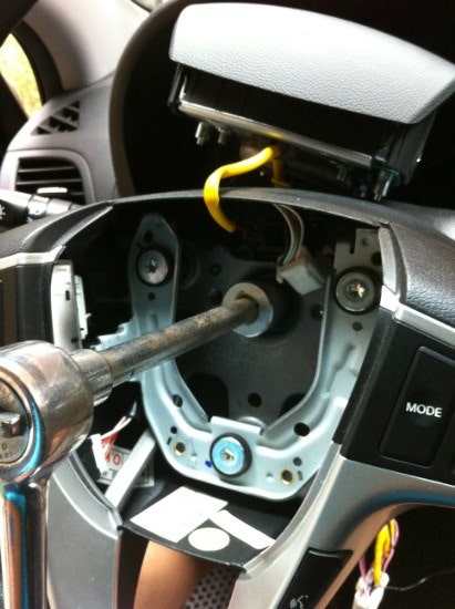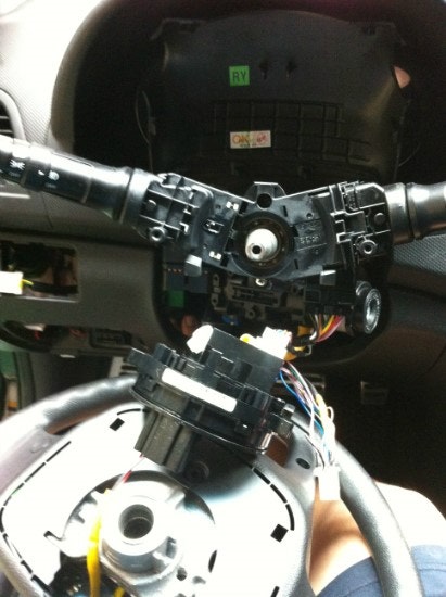 3) 클락션을 풀면 저렇게 에어백부분을 같이 탈거할수 있는데 저는 잭 안뺏어요
